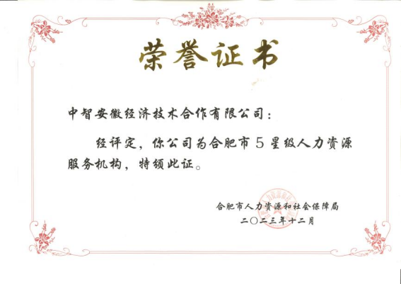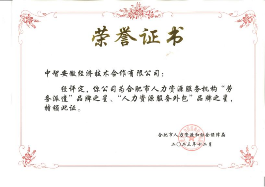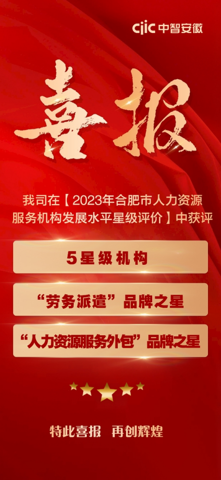 喜報!中智安徽獲評5星級人力資源服務機構、“勞務派遣”及“人力資源服務外包”品牌之星